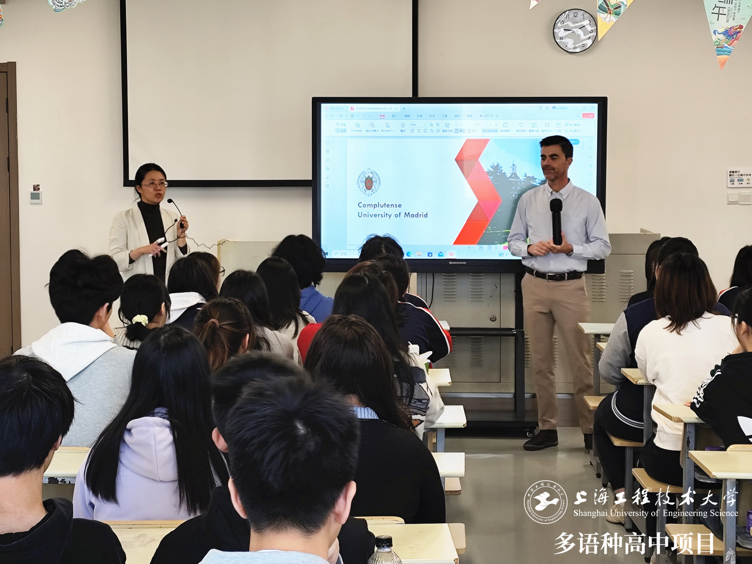 11月22日上午時(shí)分,西班牙最古老的大學(xué)——公立薩拉曼卡大學(xué)校方代表Juan教授來到上海工程大多語種高中項(xiàng)目,為西班牙語班的師生們開展升學(xué)講座并帶來了西班牙語體驗(yàn)課。此次活動(dòng)旨在加強(qiáng)中西文化交流,提升學(xué)生的國(guó)際視野,同時(shí)激發(fā)大家對(duì)西班牙語及西班牙文化的興趣。