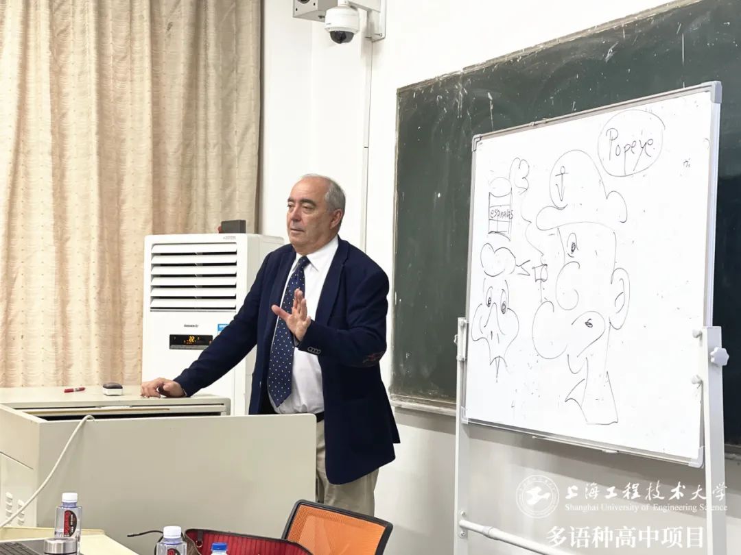 10月30日下午,西班牙公立薩拉曼卡大學校長事務代表Mr. Juan Eguiluz Pacheco教授來到上海工程大多語種高中項目,為西班牙語班的同學們介紹薩拉曼卡大學和本科、碩士專業等情況。