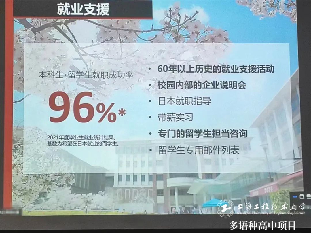 本學期中,【日本大學系列講座】已為我校日語班同學帶來了名古屋大學、大阪大學、早稻田大學等日本一流國公立和私立大學,及帝京大學、東亞大學、育英館大學、大手前大學、環太平洋大學等眾多優質私立院校的連線介紹,讓同學們能直觀了解日本大學濃厚學術氛圍和豐富精彩的大學生活,同時也知曉各類院校的錄取要求。