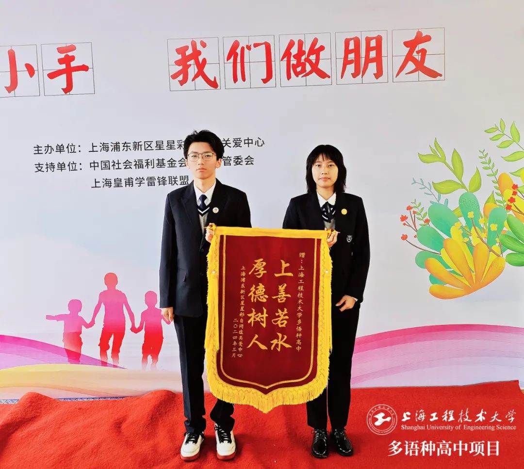 活動(dòng)中,上海浦東新區(qū)星星彩自閉癥關(guān)愛(ài)中心黃文力主任的正式表彰逐光公益社長(zhǎng)期的志愿者服務(wù)和學(xué)校對(duì)公益事業(yè)一如既往的支持,并且為公益社社員送上了錦旗。