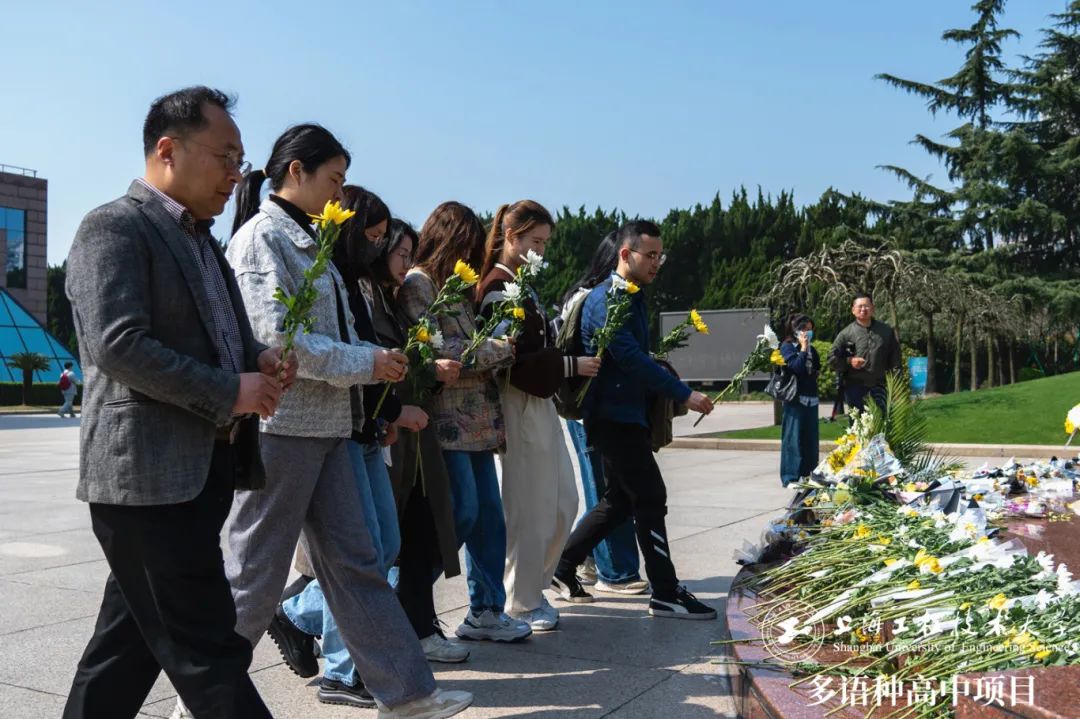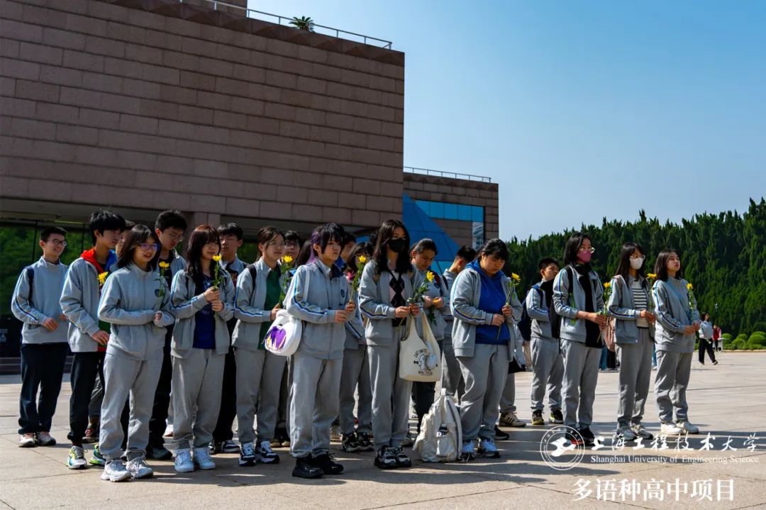 清明時節,上海工程技術大學多語種高中項目開展了一場龍華烈士陵園清明祭掃活動。清晨的陽光灑在陵園內的青松翠柏上,綠草如茵,環境幽靜肅穆。烈士們的雕塑矗立在那里,神圣而莊嚴,仿佛在向世人講述著他們曾經的英勇事跡。