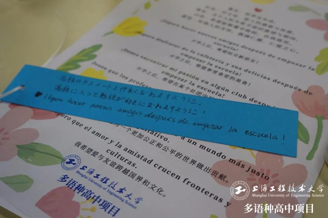 為了迎接即將到來(lái)的七夕傳統(tǒng)佳節(jié),也為了給即將開始的高中生活加油打氣,文化體驗(yàn)營(yíng)特別設(shè)置了祝福祈愿環(huán)節(jié),西語(yǔ)和日語(yǔ)組的老師們準(zhǔn)備了三語(yǔ)版本的祝福,同學(xué)們?cè)诩埞{上寫下對(duì)高中的美好愿望又或是天馬行空的想象。