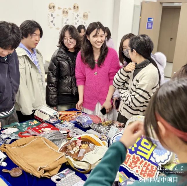 攤位前,學生們化身“職場達人”,在推銷、收銀、記賬等崗位上各展所長。為吸引“顧客”,各班奇招頻出:有的推出“買一送一”等促銷活動;也有熱衷Cosplay的同學送出親筆簽名照作為隱藏福利;也有同學帶上商品、走出班級,開展地推……中途,老師們也加入購買大軍,“化身為甲方”,只有答出“甲方”的語言問題,才有可能拿到尾款,課堂上學過的日語、西班牙語單詞在生活化的場景中強化了記憶。
