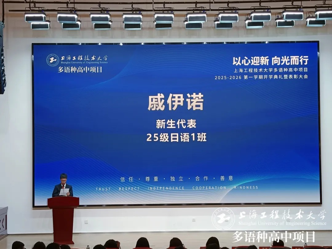 9月12日上午,上海工程技術(shù)大學多語種高中項目2025-2026學年第一學期開學典禮暨表彰大會在產(chǎn)教融合大樓一樓報告廳成功舉辦。