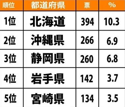 總共收到日本47個都道府縣的3836位當地居民返回的調查問卷,其中榮登「性格好地區」的第一名是占總票數10%的北海道。