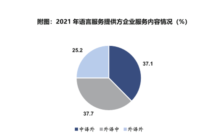 “中譯外”和“外譯中”服務(wù)內(nèi)容在語(yǔ)言服務(wù)業(yè)務(wù)中分別占37.1%和37.7%,“外譯外”的業(yè)務(wù)占25.2%,相較前兩年提升了10%。