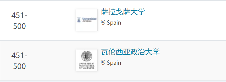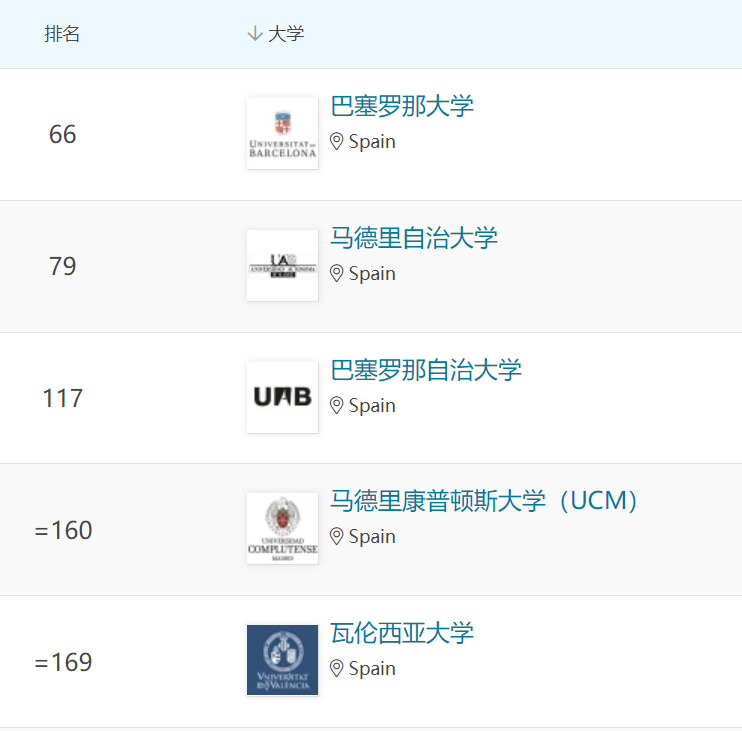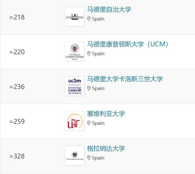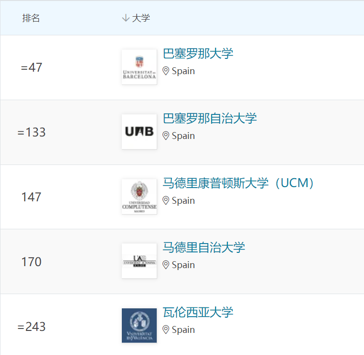 西班牙大學排名情況