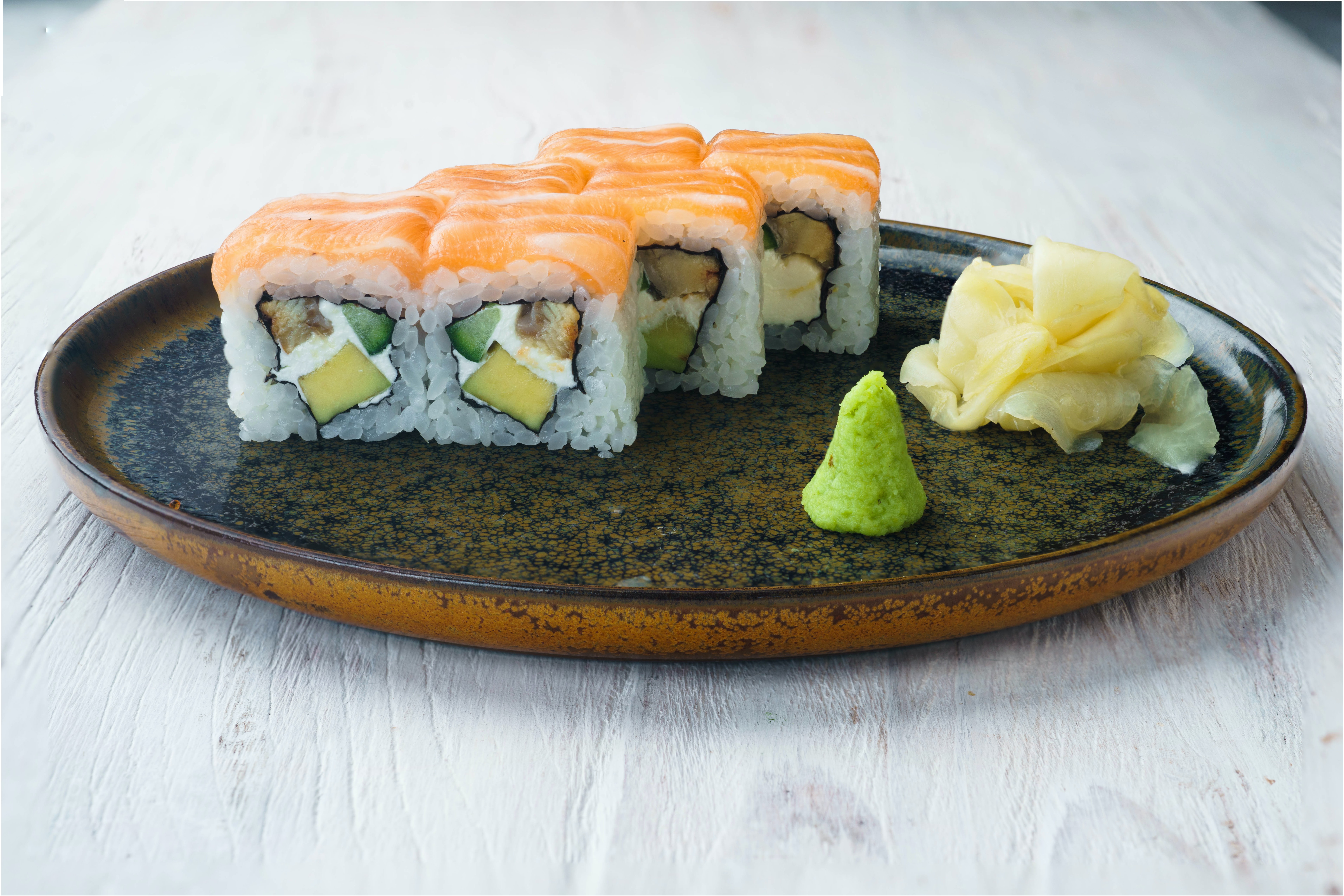 里卷壽司(ura-maki)用海苔包裹配料,米飯露外層。最初是為不習(xí)慣吃生魚貝類和外面包裹海苔這種感覺的外國人設(shè)計(jì)的,所以就將米飯反過來包住海苔和其他食材,最外層還可點(diǎn)綴芝麻、魚籽、蟹籽等。