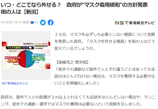 日本政府針對在室外是否戴口罩,提出了新的規定