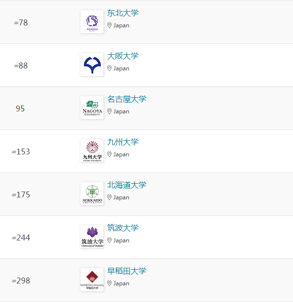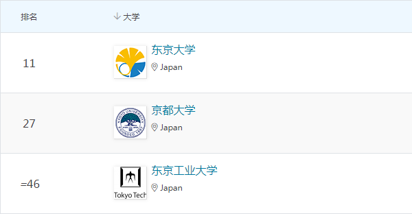 在工程與技術領域,東京大學、東京工業大學、京都大學、東北大學位列全球百強。