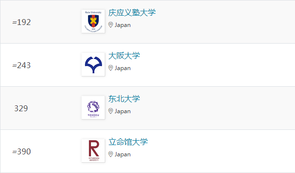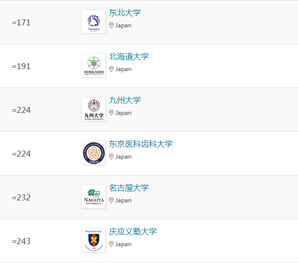 在本次排名中,日本大學在五大學科領域均有上榜Top100,以下是具體排名情況: