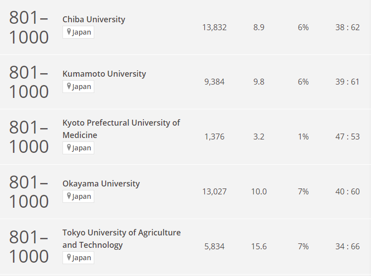 第16名:千葉大學(No.801-1000)