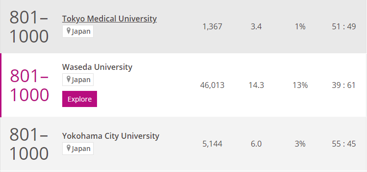 第22名:早稻田大學(No.801-1000)
