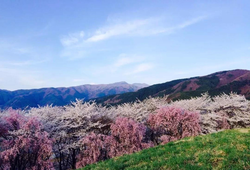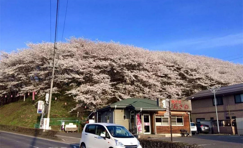 春天時漫步在道路兩岸遍山的浪漫櫻花海里,遙望身后遠(yuǎn)處正在融雪的山頭,仿佛一位披著潔白頭紗的曼妙少女正慢慢露出她美麗的面容。